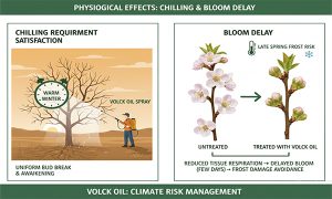 تاخیر در گلدهی (Bloom Delay): پاشش روغن ولک با غلظت مناسب در زمان تورم جوانهها، تنفس بافتی را کاهش داده و گلدهی را چند روز به تاخیر میاندازد. این ویژگی در مناطقی که خطر سرمای دیررس بهاره دارند، حیاتی است و نشاندهنده اهمیت جایگاه پلیسولفید کلسیم و روغن ولک در کشاورزی در مدیریت ریسک اقلیمی است.