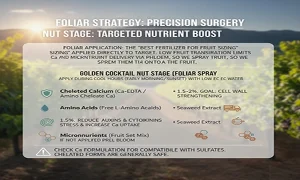 عبور موفقیتآمیز از مرحله فندقی شدن، شانسی نیست؛ محصول یک مهندسی دقیق است. ما آموختیم که علت ریزش میوه های کوچک اغلب گرسنگی پنهان سلولی و عدم تعادل هورمونی است. شما باید مثل یک پزشک، ضربان قلب درخت را کنترل کنید. نیتروژن را مدیریت کنید، کلسیم را مستقیم بپاشید، پتاسیم را برای پمپاژ قند فراموش نکنید و با اسیدهای آمینه استرسها را خنثی کنید. با اجرای این چکلیست، شما مدیر ارشد یک کارخانه بیولوژیکی هستید.