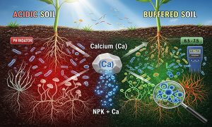در بازار ایران، اکثر خاکها آهکی هستند و کشاورز با خود میگوید: “زمین من پر از آهک (کربنات کلسیم) است، چرا باید دوباره کلسیم بدهم؟” پاسخ در “قابلیت جذب” است. کلسیم خاکهای ایران اغلب قفل شده و غیرفعال است. کود کلسیمی حاوی کلسیمی است که یونیزه شده و آماده واکنش است. این کلسیم فعال، نه تنها نیاز گیاه را رفع میکند، بلکه کلید طلایی برای باز کردن قفل فعالیتهای میکروبی است.