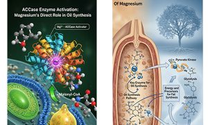 - فعالسازی آنزیم ACCase: مهمترین نقش مستقیم منیزیم، فعالسازی آنزیم استیلکوآ کربوکسیلاز (ACCase) است. این آنزیم اولین و تعیینکنندهترین مرحله در سنتز اسیدهای چرب را کاتالیز میکند. کمبود منیزیم فعالیت این آنزیم را کاهش داده و مستقیماً تولید روغن را مختل میکند.