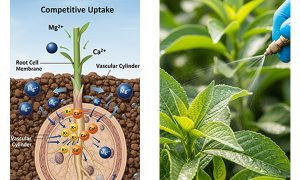 یکی از بزرگترین چالشها، تضاد رقابتی بین یون منیزیم (Mg²⁺) با یونهای پتاسیم (K⁺) و کلسیم (Ca²⁺) در جذب ریشهای است. در خاکهایی با سطح پتاسیم یا کلسیم بالا، حتی با وجود منیزیم کافی در خاک، گیاه نمیتواند آن را جذب کند و دچار کمبود القایی میشود.