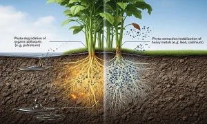 گیاه پالایی : استفاده از گیاهان برای پاکسازی خاک‌های آلوده به مواد نفتی و سنگین